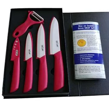 Compared to traditional metal knife sets, the 5 Piece Pink Ceramic Knife Set is notably lighter, offering ease of use while delivering exceptional sharpness that metal blades often can't match. Plus, the vibrant color adds a fun, stylish flair that most standard knife sets lack.