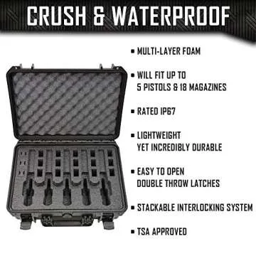 5 Pistol 18 Magazine DORO Gun Case - Waterproof, Heavy Duty Tactical Holder, 18 x 14 x 7-Inches