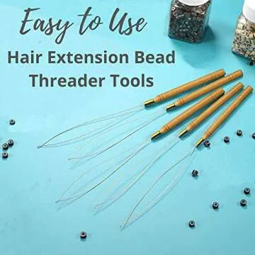5 Wooden Hair Extensions Loop Needle Threader Wire Pulling Hook Tool for silicone microlink beads and feathers, Set of 5 for hair or feather extensions (5 Loop Tools)