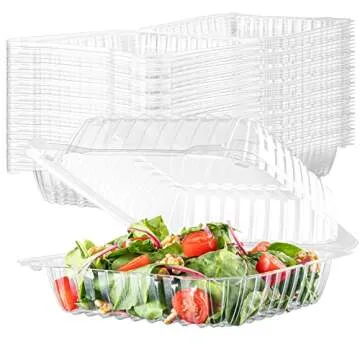 50 Clear Plastic Containers, 8" X 8" X 3" Hinged Lid Togo Containers for Food | Clamshell Food Containers for Strawberry Boxes, Bakery Supplies, Cake, Cookie, Dessert, Salad Containers, Treat Boxes