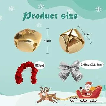 50 Pack 1 Inch Jingle Bells Christmas Gold Jingle Bells for Craft Festival Decoration with 30 Meter Red Cord and 12 Bowknots