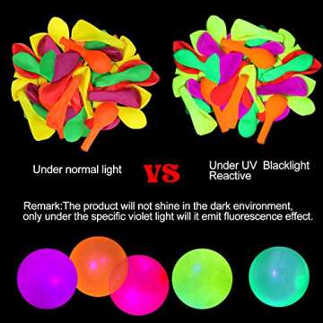 50 Pack Neon Glow Balloons Fluorescent Party Balloons 12inch Glow UV Blacklight Reactive Neon Balloons Glow in the dark Latex Balloons Fluorescent Glow Party Balloons Wedding Black Light Balloons