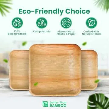 50 Palm Leaf Disposable Plates (8 Inch) + 100 Compostable Cutlery (50 Forks, 50 Knives) | Heavy Duty Party & Catering Plates | Biodegradable, Eco-Friendly, Alternative to Bamboo, Wood, Paper, Plastic