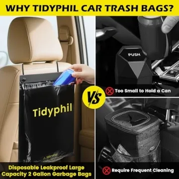 While many car trash bags may offer similar functionalities, the **TidyPhil Disposable Car Trash Bags** stand out primarily due to their **dual usage** options and **odor-sealing capabilities**. Unlike other brands, our product doesn't rely on hooks or bins, making it incredibly easy to install and use without cluttering your vehicle further. Additionally, the premium leak-proof design ensures peace of mind during even the messiest of trips, setting it apart from lesser options on the market.