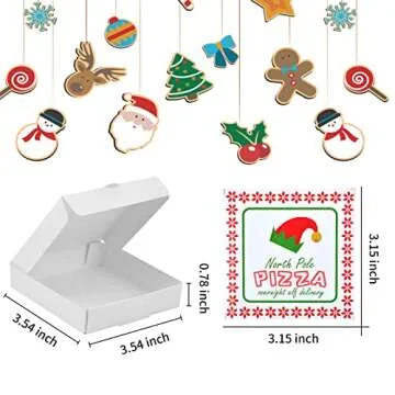 50 Pcs Elf Mini Pizza Box Christmas Pizza Box Square Cardboard Mini Pizza Box with Elf Sticker for Celebrations Party Favors Christmas Birthdays Valentines Day Weddings(3.54 x 3.54 x 0.78 inches))