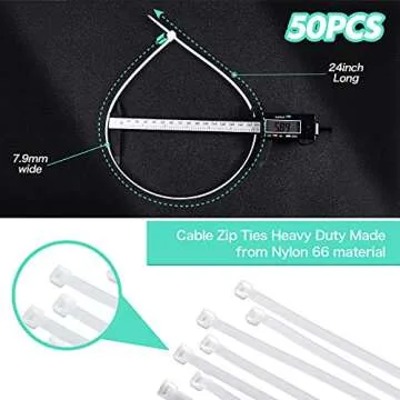 50 Pcs Zip Ties Heavy Duty Strong Large Cable Industrial Sturdy Wire Ties, Awnings Tying Branches Bundling of Crops Fixed Water Pipes(White,24 inch x 7.9 mm)