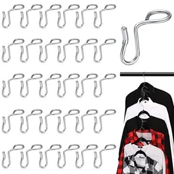 Show moreTransform your closet organization with our innovative 50 Pieces Clothes Hanger Connector Hooks. Say goodbye to cluttered spaces and endless searching for the perfect outfit! These metal hanger connector hooks are expertly designed to allow you to hang multiple items vertically, which significantly saves closet space and brings order to your wardrobe. Crafted from high-quality metal, each hook features a smooth edge that ensures a sturdy hold, being less prone to deformation—a reliability that guarantees their benefits for years to come!