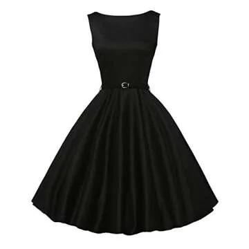 50's Vintage Dresses for Women with Belt Black Size L F-13