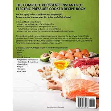 Show more Discover a revolutionary way to enjoy ketosis with the 500 Keto Instant Pot Recipes Cookbook. This exceptional cookbook is tailored for busy lifestyles, providing an extensive collection of easy-to-follow and delicious recipes that seamlessly blend the benefits of the ketogenic diet with the efficiency of the Instant Pot. Whether you're a keto veteran or new to the diet, this cookbook offers something for everyone, from hearty meals to delightful treats, designed to satisfy your cravings while keeping you on track with your health goals. Perfectly formatted and user-friendly, this cookbook makes meal preparation a breeze, allowing you to enjoy a healthy diet without the hassle of extensive cooking times.