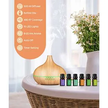 Versatile 500ML Essential Oil Diffuser with 6 Essential Oils Included