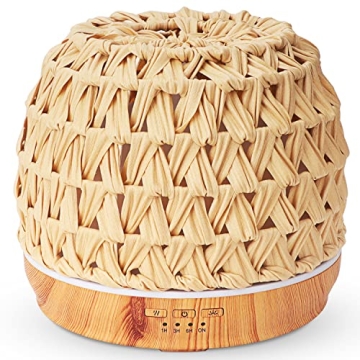 Show more Transform your space with the 500ml Essential Oil Diffuser, an exquisite blend of functionality and aesthetic appeal. Crafted from beautiful handmade woven rattan, this diffuser showcases a stunning vintage metal shell, making it a perfect decorative accent for your home. It’s not just about appearance; this diffuser ensures that your living area, bedroom, or kitchen remains filled with soothing aromas. With a large 500ml water capacity, this diffuser provides long-lasting performance, running continuously for up to 15 hours, ensuring that you and your loved ones enjoy a serene environment all day and night.