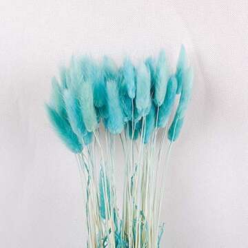 50PCS Home Decoration Lagurus Ovatus Rabbit Tail Dried Flowers,Real Flower,Eternal Flower Dried Grass,Flower Bouquet, Photo Props Home Party and Wedding Decor(Blue)