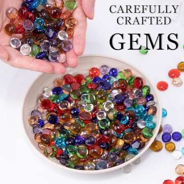 Show more Transform your decor with our stunning glass gems, crafted to perfection to bring vibrancy to any setting! These exquisite pieces, measuring approximately between 0.5 and 0.7 inches, are made from high-quality colored glass, allowing their brilliant hues to shine naturally without the use of harmful dyes or paints.