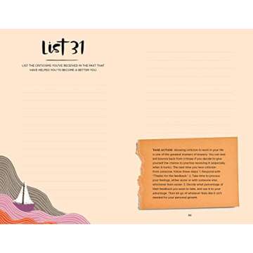 Show moreUnleash your inner strength with the inspiring 52 Lists for Bravery: Journaling Inspiration for Courage, Resilience, and Inner Strength. This beautifully designed journal combines captivating prompts with stunning photographs to guide you on a transformative journey towards self-awareness and empowerment. Each week, you’ll explore a powerful theme carefully crafted to trigger deep reflection and evoke courage. With its unique structure, this journal encourages you to create lists that encompass your aspirations, fears, and victories, fostering a concrete sense of bravery in your life.