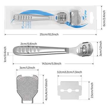 52 Pieces Callus Shaver Set, 50 Replacement Slices Blades 1 Stainless Steel Callus Shaver and 1 Foot File Head Foot Care Tools Hard Dry Skin Remover for Hand Feet