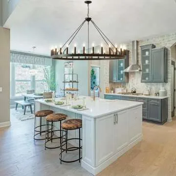 The **53 Inch Large Black Wagon Wheel Chandelier** makes a perfect gift for various occasions. Whether celebrating a new home purchase, housewarming parties, or engaging in major renovations, this chandelier symbolizes warmth and thoughtfulness for beloved family or friends. Moreover, its presence is ideal for festive gatherings, where the ambiance truly sets the tone.