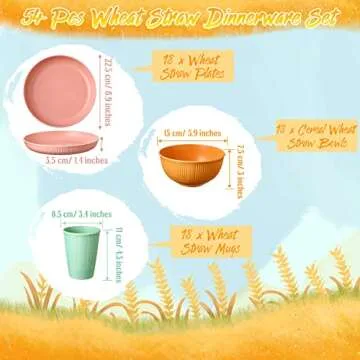 54 Pcs Dinnerware Sets Unbreakable Dish Set for 18 Microwave Dishwasher Safe Reusable Plate Cup and Bowl Set Lightweight Plastic Dishes for Kitchen, Camping, Picnic, RV, Dorm