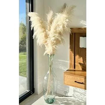 55" inch 5 Extra Tall Premium Natural Pampas, Pampas Grass Decor Tall, Wedding, Party, Boho, Office or Modern Decor, Large and Feathery, Perfect Tall Pampas Grass for Floor Vase.