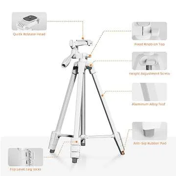 55" Phone Tripod -PHOPIK Extendable Tripod Stand with Shutter-Video Tripod with 360 Panorama and 1/4” Mounting Screw for iPhone/Android/Sport Camera-Phone Holder for Smartphone-Upgrade White