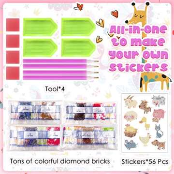 57PCS Diamond Painting Stickers for Kids - Fun DIY Diamond Painting Kits for Kids, Arts and Crafts for Kids Ages 8-12/6-8, Gem Sticker Art Kits for Kids Adult Beginners Gift