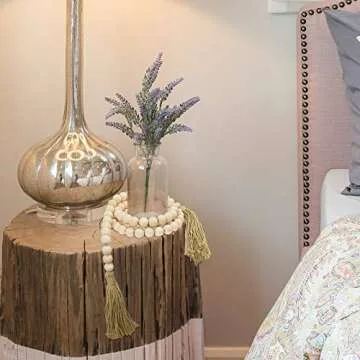58in Wood Bead Garland with Tassels, Farmhouse Bead Rustic Country Decor Prayer Boho Beads Wall Hanging Decoration with Tassles Prayer Beads Wall(White)