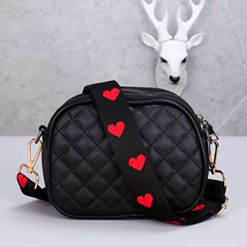 5Chaos Heart Punk Purse Strap for Crossbody Shoulder Handbag, Embroidery Vintage Nylon Adjustable Strap for Women Bag Replacement