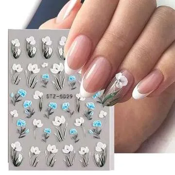 Show moreTransform your nail game with our 5D Flower Nail Art Stickers. Each package includes 6 sheets of beautifully designed embossed floral decals that feature an enchanting mix of white and blue flowers along with delicate butterfly patterns. These self-adhesive stickers are perfect for creating stunning nail art that expresses your unique style. Whether you want to achieve an elegant look or a playful vibe, these nail decals are your perfect companion for a variety of designs. For those who appreciate beauty and creativity in their manicure, this set promises to elevate your nail art experience to a whole new level.