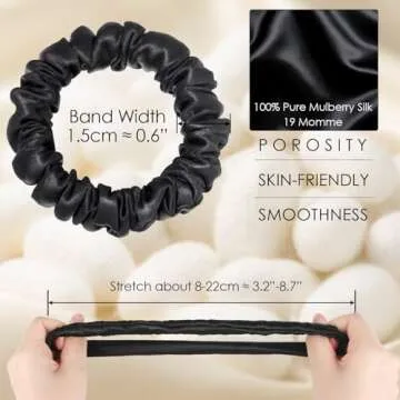 5Pack 1.5MM Silk Scrunchies For Hair 100% Pure Mulberry Silk 19 Momme Scrunchies With Elastic Band Silk Hair Scrunchies Hair Ties for Women
