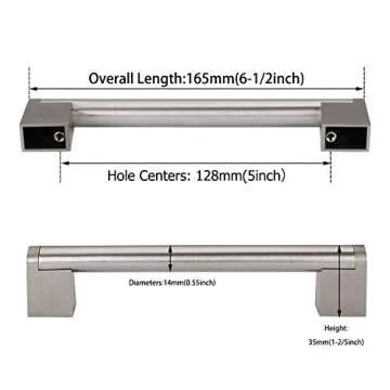 Show moreUpgrade your kitchen or bathroom with the stunning 5 Pack homdiy 5 Inch Brushed Nickel Cabinet Pulls. These modern cabinet handles blend style and functionality, making them the perfect choice for any home renovation project. Crafted from high-quality stainless steel with a zinc alloy base, the brushed nickel finish not only provides a sleek appearance but also ensures durability and rust resistance. With a 5-inch center to center measurement and a 6-1/2 inch overall length, these cabinet pulls fit seamlessly on most cabinets, instantly elevating any space.