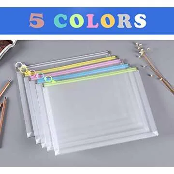 5 Packs of Colorful Zip Envelopes for Ultimate Organization