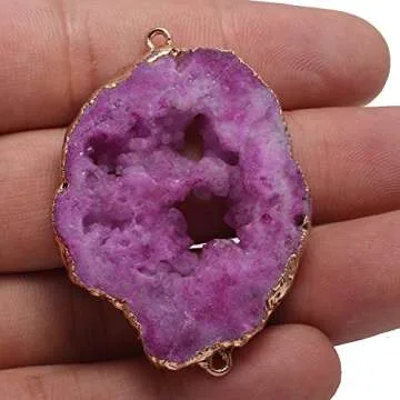 Show moreUnleash your creativity with our 5Pcs Natural Druzy Agate Links Necklace Pendants, perfect for crafting exquisite jewelry pieces that stand out. Each charm, uniquely shaped and rich in stunning colors, features the allure of natural druzy agate elegantly accentuated by a gold-plated edge. Ranging between 30-35mm, these stunning links are not only visually captivating but also designed to simplify your jewelry-making experience.