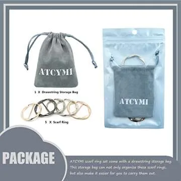 5PCS Silk Scarf Ring Clip T-shirt Tie Clips for Women Fashion Metal Round Circle Clip Buckle Clothing Ring Wrap Holder with 1 Storage Bag