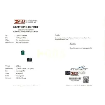 6.34 Carat Loose Natural Emerald, Viv Green Color, EM Shape, GRS Certified (2022-087068), Real Emerald, Natural Stones For Jewelry Making, Loose Gemstones, Precious Stones, Gift For Her Rare Gift