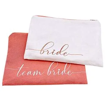 Show moreDiscover the perfect way to celebrate your upcoming wedding with the elegant **6 Bridesmaids Makeup Bags & 1 for Bride** set. This thoughtfully curated set includes **six stylish Team Bride canvas makeup bags** adorned with chic white letters, alongside a specially designed **makeup case for the bride**, featuring stunning rose gold foil letters. Crafted from **strong cotton canvas**, these bags marry practicality with exquisite design, making them an essential addition to your bridal party preparations. Celebrate your special day while ensuring your bridal party feels appreciated and stylish!