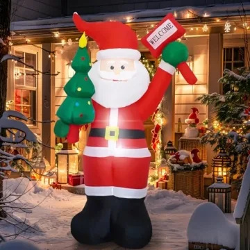 Show moreBring the magic of the holiday season to your home with the stunning Inflatable Santa Claus Christmas Decoration! Standing an impressive 6 feet tall, this delightful inflatable greets all with a cheerful 'WELCOME' sign, embodying the spirit of Christmas. Made from high-quality waterproof polyester fabric, this decoration is designed to withstand the elements while maintaining its vibrant appearance. The built-in bright LED lights illuminate its warm smile, setting a festive ambiance that will charm your guests and passersby alike.