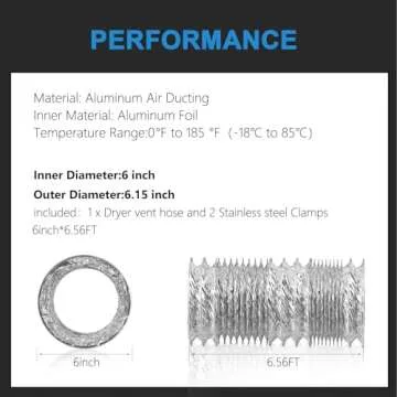 Show moreIntroducing the Hon&Guan 6 Inch Duct 6.56 Feet Flexible Dryer Vent Hose—the perfect solution for efficient dryer exhaust management in tight spaces. This versatile aluminum duct hose is not only 6 inches in diameter but also extends to an impressive 6.65 feet, providing ample length for all your ventilation needs. Its flexible design allows it to bend easily, making it ideal for installations in both cramped and spacious areas. Whether you're connecting your dryer to the duct or using it for various ventilation purposes, this product promises reliability and convenience.