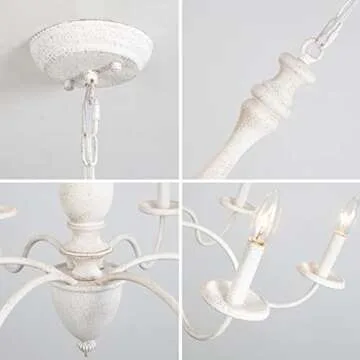 Show moreTransform your living space with the stunning 6-Light Chandelier Farmhouse Chandeliers crafted specifically for lovers of rustic elegance. This enchanting French Country White Chandelier seamlessly blends the charm of handmade wood with the durability of high-quality iron. Its traditional candlestick design not only illuminates your rooms but also serves as an eye-catching centerpiece, making it the ideal light fixture for any modern dining room, bedroom, or foyer. The thoughtful crafting process ensures that this chandelier adds a touch of sophistication to your home while providing the functionality necessary for daily use.