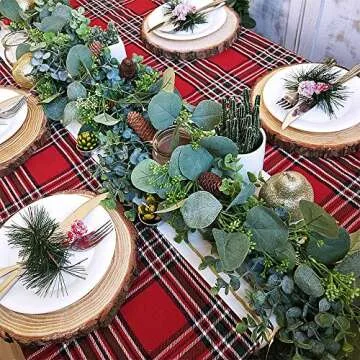 6' Long Faux Seeded Eucalyptus Garland Fake Silver Dollar Eucalyptus Leaves Greenery Hanging Garland Vine Table Runner Garland Artificial Silk Eucalyptus Decorations for Wedding Christmas Holiday
