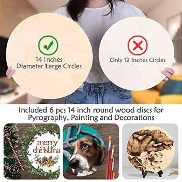 6 Pack 14 Inch Wood Rounds,14 Inch Round Wood Circles for Crafts, Unfinished Wood Circles Wood Sign Blank, Wooden Discs for DIY Crafts, Door Hangers and Christmas Decoration