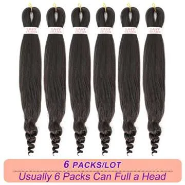 Show more Experience the ultimate in hair styling with our premium quality braiding hair, designed for the modern individual who desires both versatility and elegance in their look. This exceptional product features six bundles of luxuriously soft hair that is tangle-free, making it a dream to work with. Whether you're looking to create stunning braids or elegant updos, you'll find this hair the perfect canvas for your creativity.