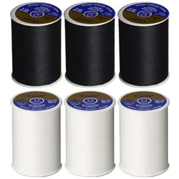 6 Pack Bundle - (3 Black + 3 White) - Coats & Clark Dual Duty All-Purpose Thread - Three 400 Yard Spools each of BLACK & White