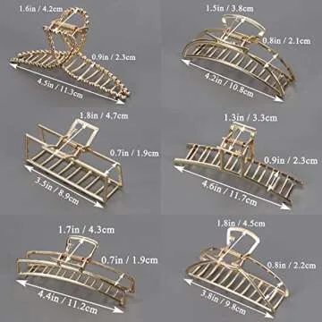 6 Pack Gold Hair Accessories | Hair Clips for Thick Hair - Extra Large Metal Claw Clips, Cute Banana Hair Clips for Women Girls
