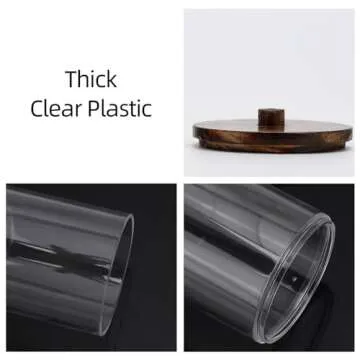 Crafted from sturdy, thick clear plastic, these containers not only serve a practical purpose but also add a touch of modern style to your decor. The natural wood lids provide a unique twist, with subtle variations in color that enhance their aesthetic appeal. Whether you want to spruce up your bathroom, kitchen, or office, these jars are an excellent choice.