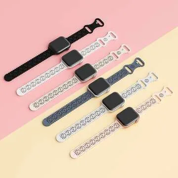 6 Pack Slim Thin Lace Hollow-out Silicone Bands Compatible with Apple Watch 38mm 40mm 41mm 42mm 44mm 45mm 46mm 49mm Women, Breathable Sport Strap for iWatch Series 10/9/8/7/6/5/4/3/2/1 Ultra SE