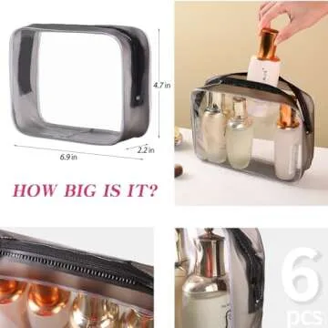Show moreIntroducing the 6 Pack Toiletry Bag Makeup Bag Cosmetic Bag, your premier travel companion, specially designed to comply with TSA regulations. Measuring 7.0 x 4.7 x 2.2 inches, this TSA Approved Clear Travel Toiletry Bag is perfect for air travel, ensuring your liquids and toiletries are securely stored and easily accessible. With its clear design, you'll never have to dig through your luggage again, allowing for a stress-free travel experience!