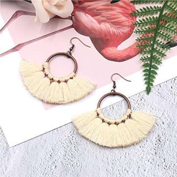 6 Pairs Tassel Earrings Hypoallergenic Big Hoop Dangle Fringe Boho Colorful Piercing Chandelier Statement Tortoise Shell Earring Sets for Women