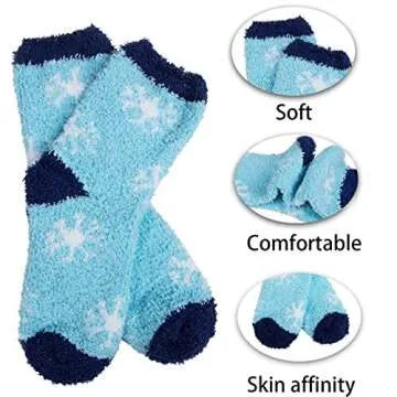 6 Pairs Womens Fuzzy Socks Winter Warm Soft Cozy Fluffy Microfiber House Sleeping Slipper Socks Christmas Gifts,J- Blue Stripe Socks