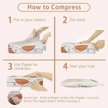 Show more Transform your travel experience with the ultimate 6 Pcs Compression Packing Cubes for Travel Suitcases. These thoughtfully designed organizer bags not only keep your clothes neatly packed but also elevate your travel style with their eye-catching and unique patterns, allowing for easy identification of contents at a glance. Say goodbye to the chaotic jumble of clothes and hello to a meticulously organized luggage experience. Each cube is optimized for space efficiency, ensuring you can fit in all your essentials without unnecessary bulk or clutter.