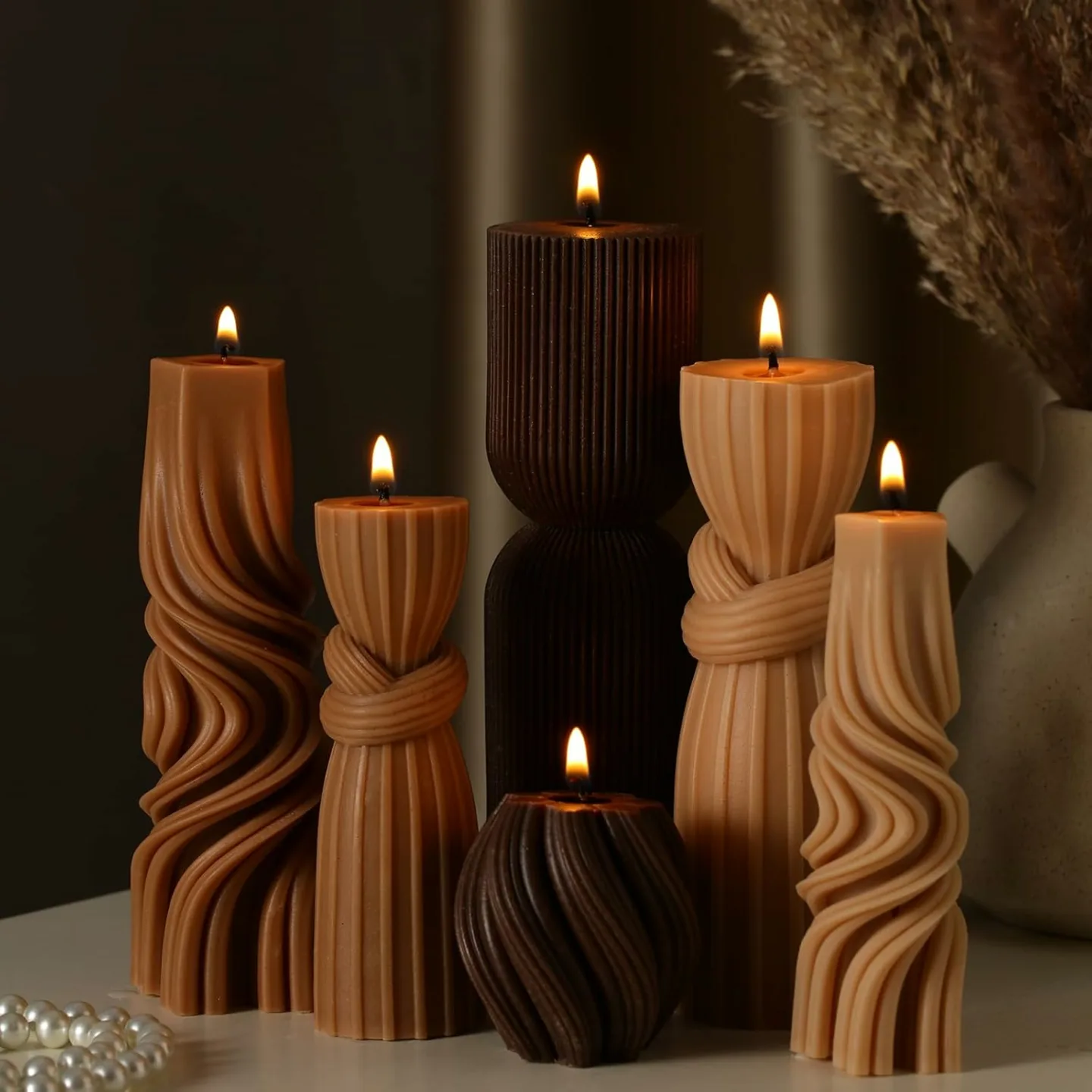 6 Pcs Cute Modern Ribbed Soy Wax Pillar Candles Set for Home Decor