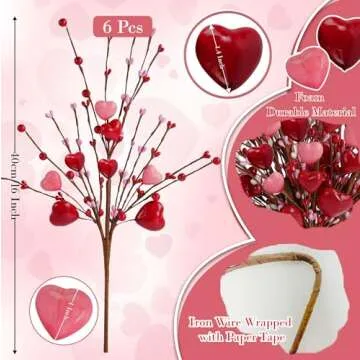 Transform your Valentine's Day celebrations with the exquisite 6 Pcs Valentine's Day Heart Berries. These captivating floral picks come in a delightful assortment of red and pink heart-shaped designs, perfect for adding a vibrant touch to any festive occasion. Each pick measures 16 inches in height, making them versatile for various decorating needs—from romantic table settings to charming floral arrangements. Crafted from durable foam materials, these artificial berry stems ensure longevity...